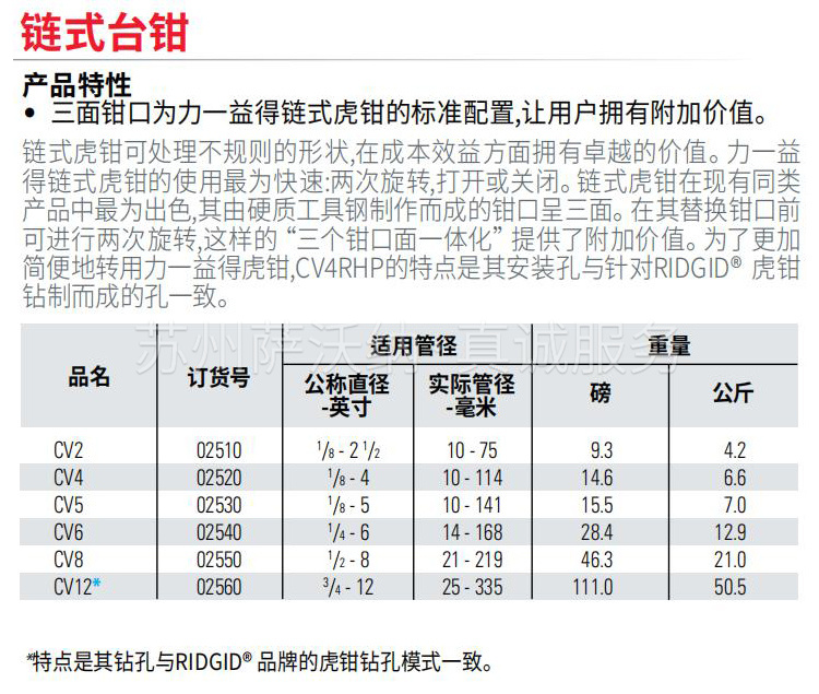 jaws力得链式虎钳可节约成本,因其具有三面钳口的标准配备。容量为12英寸的链式虎钳仅为力得所有。