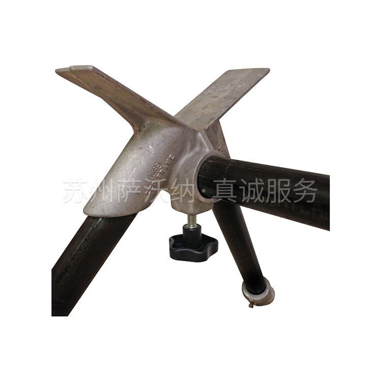 提供此夹钳的支脚和支柱,但必须单独订购 (#96014),重量为 22.7 千克(50 磅)。如果需要制作支脚,可使用 1 1/2" Sch.40 钢管。