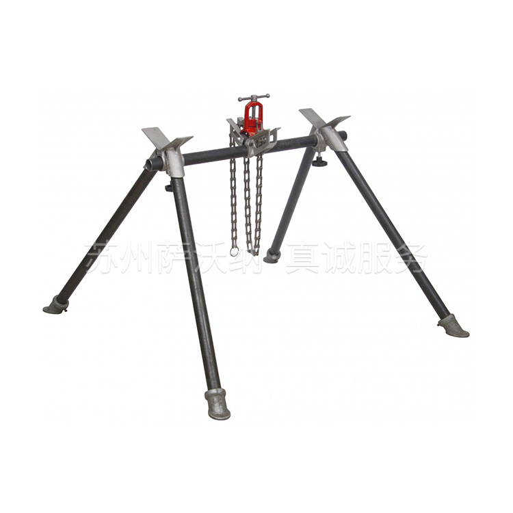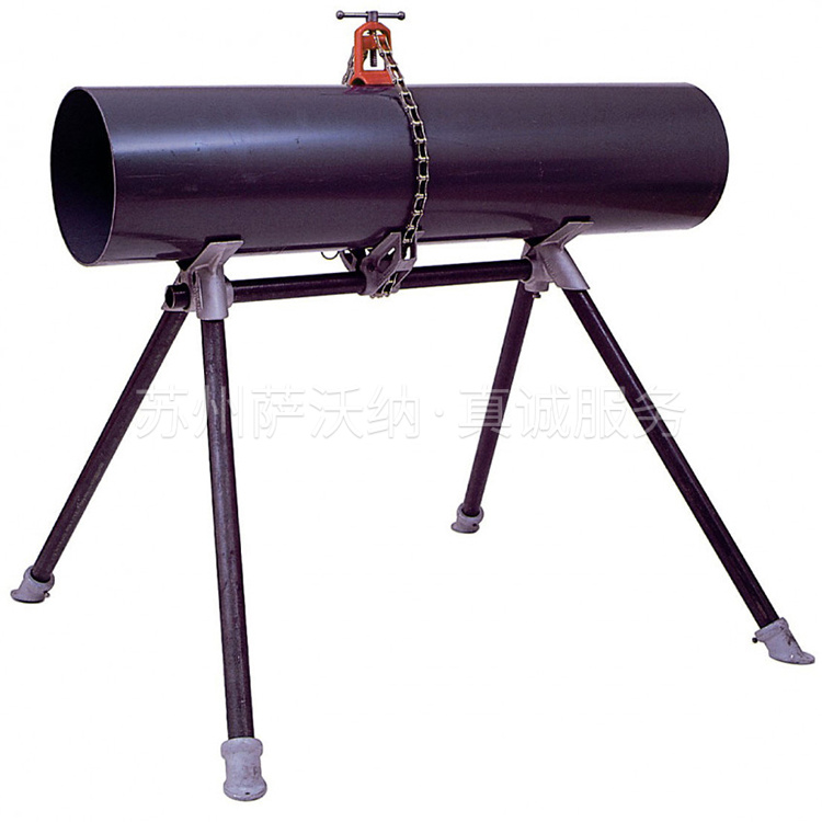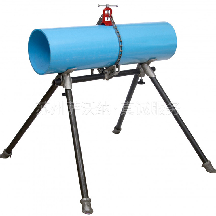 虎钳通过拧紧光滑钳口的链条,将管道夹在支架上。