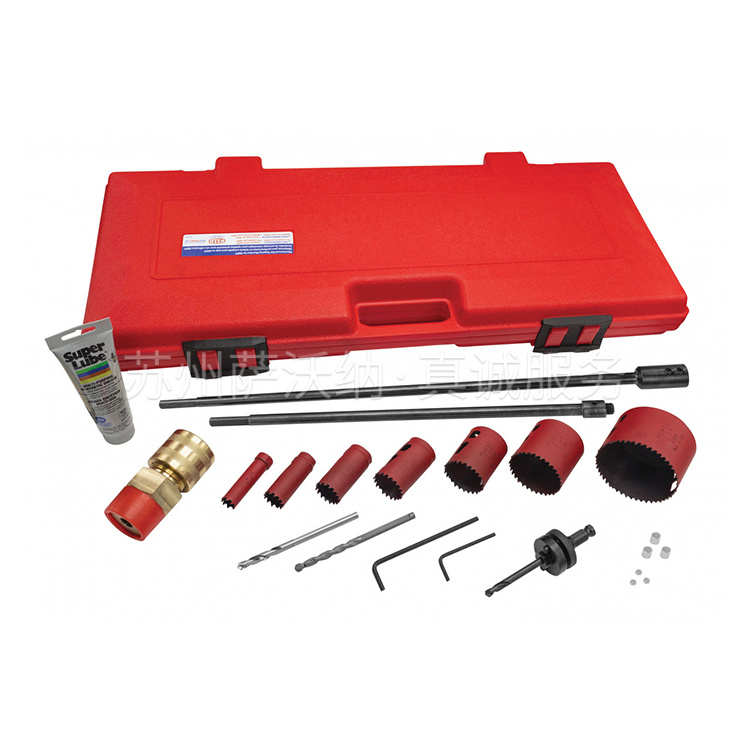 根据孔锯制造商的建议转速,使用钻孔电机为 3/8 英寸或 1/2 英寸的孔锯。