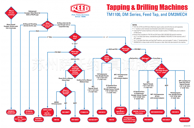 适用于大多数管道材料,所有 REED DM3MECH 型号均可以在任何适当尺寸的主管道上进行 3/4 英寸 到 4 英寸阀门分支连接。借助于合适的孔锯,这些机器能够在不停水的情况下连接到压力高达 300 psi 的冷水和热水系统以及高达 125 psi 的蒸汽管道系统,这一流程就叫做“带压打孔”。本机适用于低碳钢管、镀锌钢管、不锈钢管、铜管、黄铜管和铝管。机械带压打孔机通过插入作业鞍架或螺纹管接头在管壁上钻孔。使用本机无需对管道系统进行关闭、排空、切割、重安装和重填充。