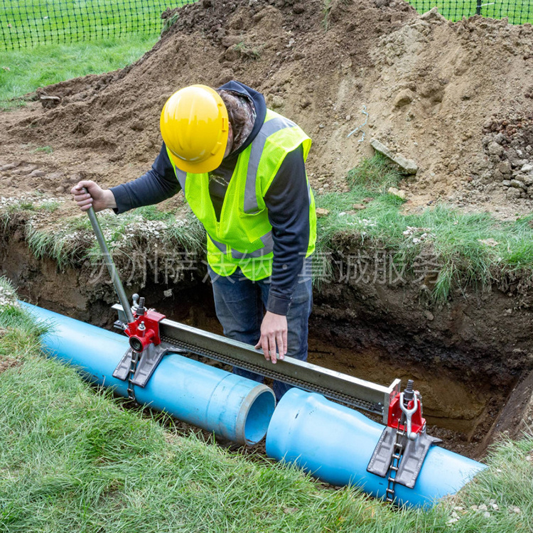 对于密封管材:这种塑料管接管机能够对直径为4” - 16” 的 IPS 和铸铁密封管材进行连接和分离。连接密封管材所需的组件包括塑料管接管机 (PPJ) 和 V 形鞍座 (PPJVS)。 密封管材常用于地下作业,如灌溉系统和公用设施等地点。PPJ PVC接管机还可反转方向,操作工可利用机械杠杆拉开带密封胶圈的 PVC 管。