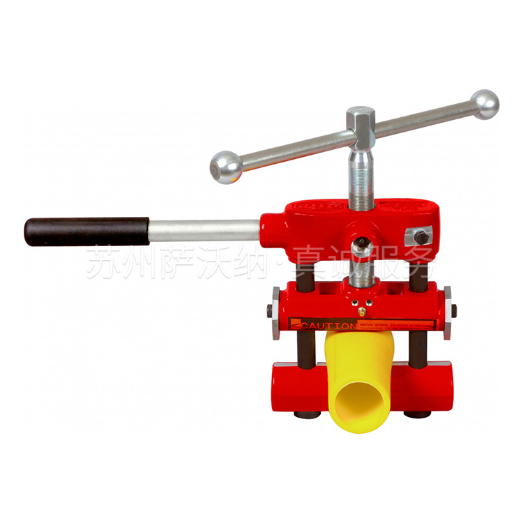 REED PE挤扁器采用最优异设计,适用管径为1/2-8 英寸。 不同的型号可处理各种管道尺寸和应用。这些中型挤压工具上的滑杆手柄使在狭窄地方的工作更容易,并增加了拧紧的杠杆作用。进给螺杆上的细牙螺纹可实现可控、省力的挤压。摩擦点的润滑脂配件使操作更顺畅并延长工具寿命。铝质压杠经过阳极氧化处理或涂漆以防腐蚀。所有 PE 挤压工具都使用挡块来防止过度夹紧造成的损坏。一对挡块上的多种尺寸/SDR 设置为标准管道尺寸提供快速、方便的过度挤压保护。