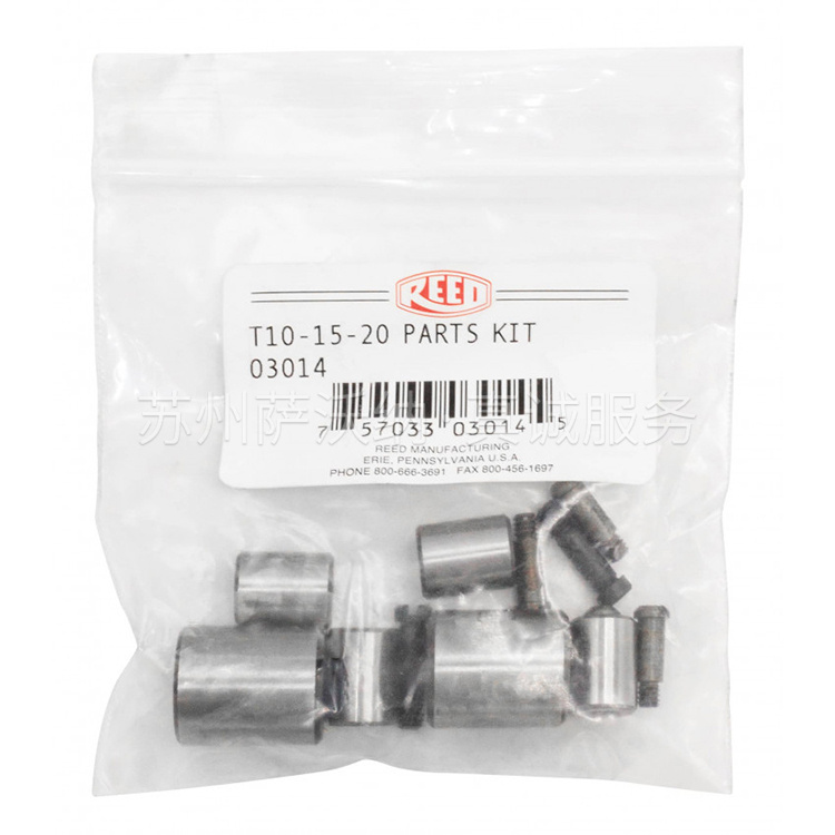 1-2零件包和3-4-6零件包包含了速释切管机的常用零件,适合简单的现场维修。T10、T15和T20管刀的备件包含在T10-T15-T20零件包里。RPR KIT是带格挡的盒子,里面有各种速释切管机的零件,还有塑料管剪刀的替换刀片。