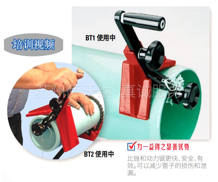 比锉和动力锯更快、更安全、更有效。可以减少管子的损伤和泄漏。