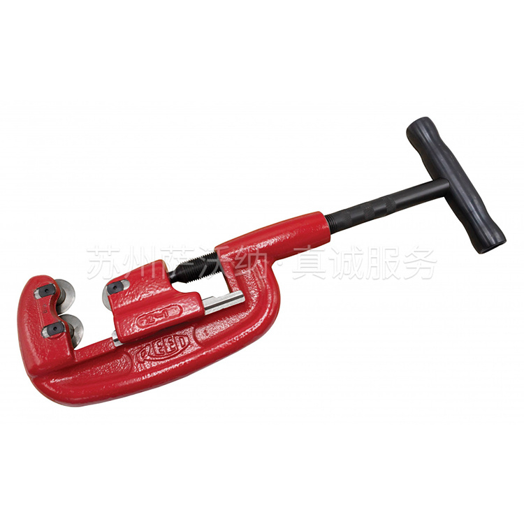 力得提供各种金属管刀,有的带导向架,有的不带。普通不带导向架的切管机机身是可锻铸铁。这些切管机适合切碳钢、不锈钢或铸铁,切割不同材质,更换刀片即可。因刀片锋利,所以手柄可设计得更短,适合小空间操作。2-3型带有三个刀片(无滚轮),因此切割时无需大幅度转动手柄。2-4WG带有独家设计的导向架,便于稳固切刀,使切口笔直。导向架尤其有利于切割不锈钢和腐蚀严重的管子。