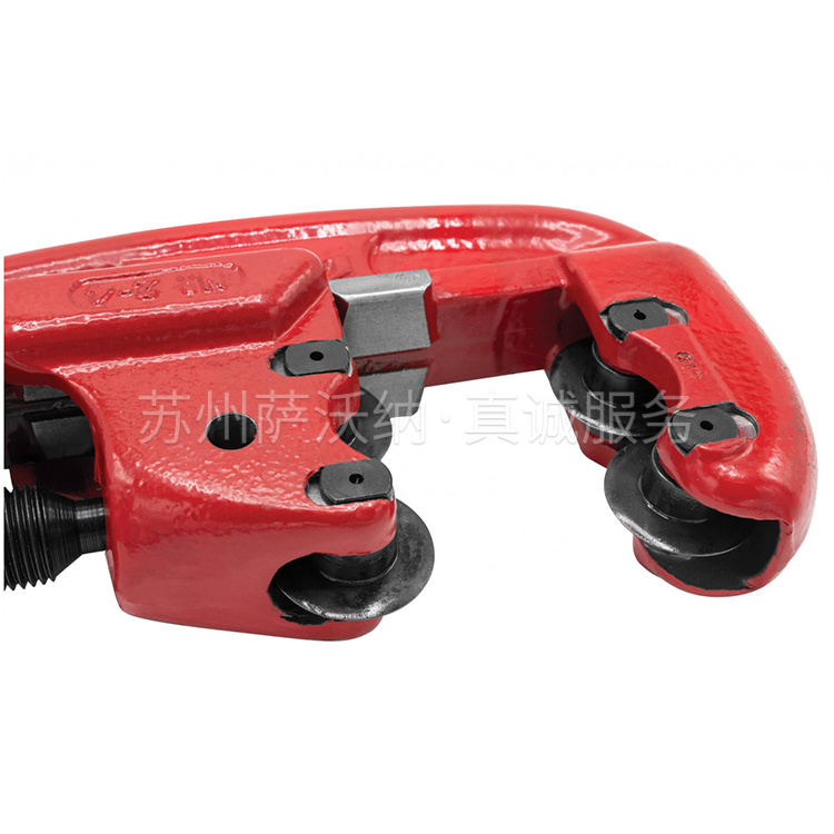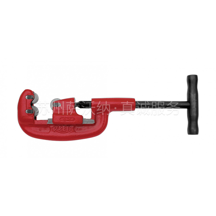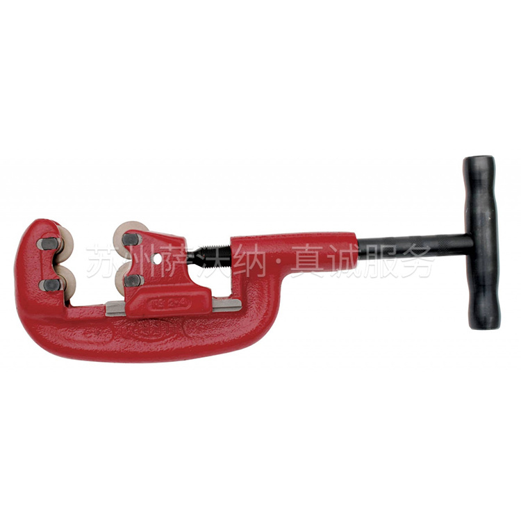 短手柄适合小空间操作。宽滚轮帮助笔直切割。切钢、不锈钢或铸铁管时干净、快捷。切后不留毛边,适合套丝。