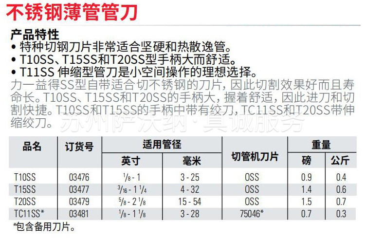 伸缩式不锈钢管割刀 T10SS,T15SS,T20SS,TC11S