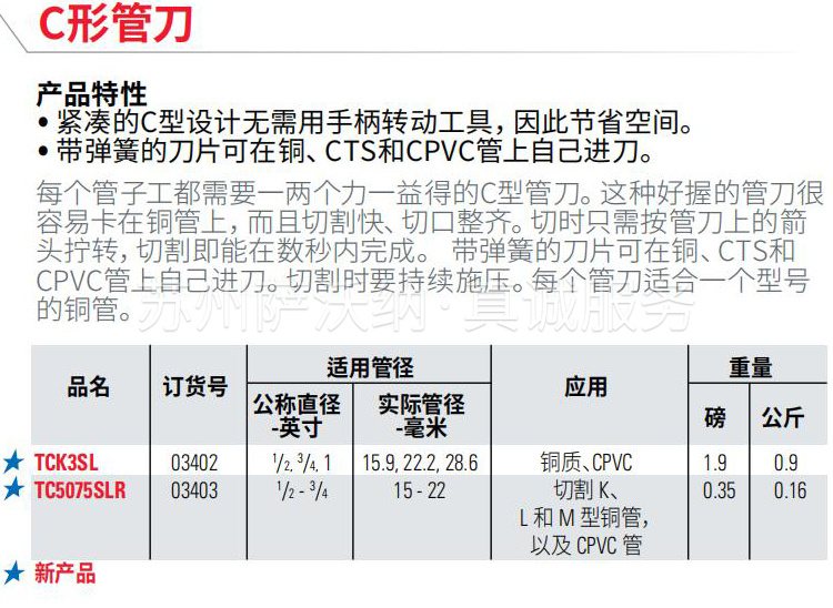笔直切割,中和高密度管的误差在1/8寸(3mm)以内。有坚固的框架和独特的刀片设计
