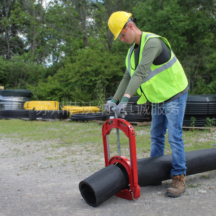 极具效力的铡刀适合切割SDR15.5至SDR9的厚PE 管,误差小于3毫米。 同砂轮锯相比,铡刀更安全,因其避免碎屑产生并夹留在阀门中。用于 壁厚超过SDR17的PE管 – 这种强劲锋利的铡刀适用于壁厚超过SDR17的PE管。可切管径达350毫米。切口平面误差在3毫米之内,因此电熔焊接时无需刨光。热熔焊接时需刨光程度 也很少。耐用、带特氟龙涂层的刀片保证切口笔直平滑,避免了碎屑夹在阀门和法兰的窄小之处。刀片容易磨光和更换。 使用时,一边摇动切管机,一边进刀,这样,刀片就会吃进管壁,而不挤压管子。刀片可再磨光和更换。